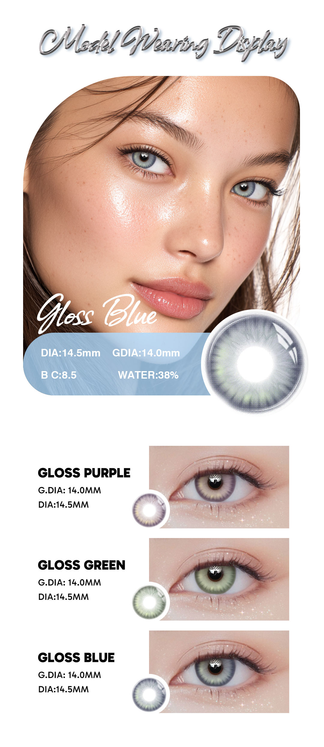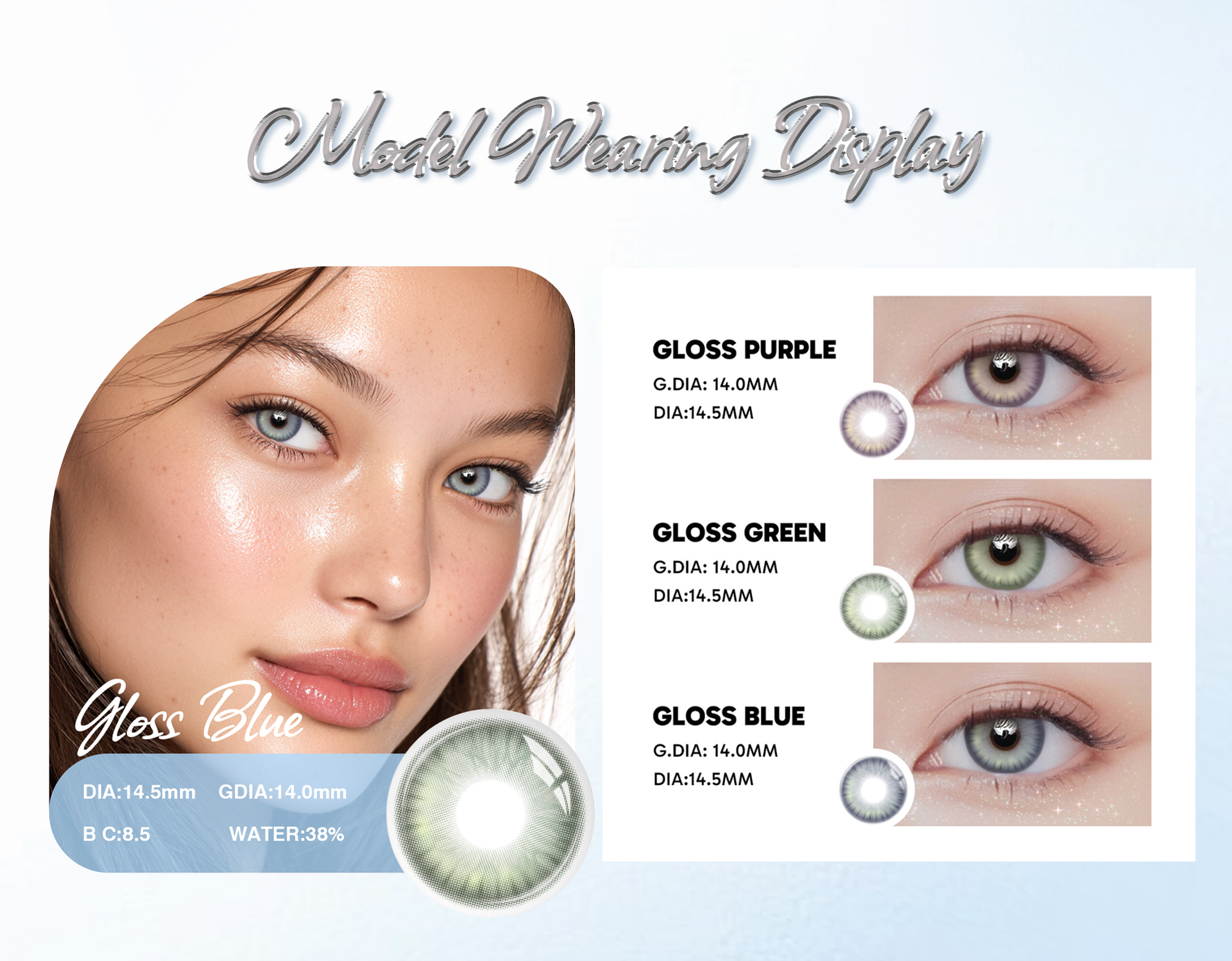 The Gloss Blue – 1 Year, 2 Lenses set offers vibrant, natural-looking blue lenses with long-lasting durability and comfort. Ideal for everyday wear or special occasions, providing style, safety, and ease of use for a full year.