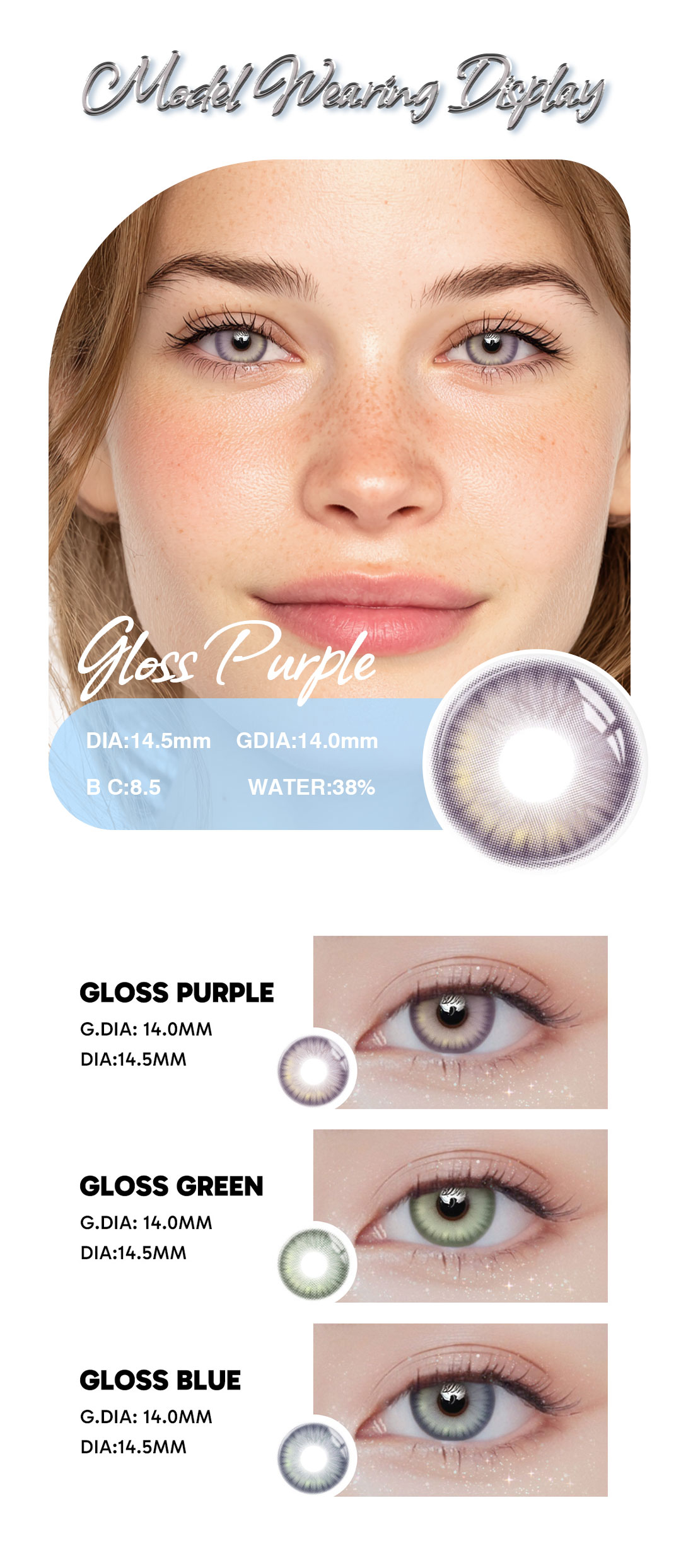 The Gloss Purple – 1 Year, 2 Lenses set delivers vibrant, natural-looking purple lenses with long-lasting comfort and durability. Perfect for daily wear or special occasions, offering style, safety, and convenience for a full year.