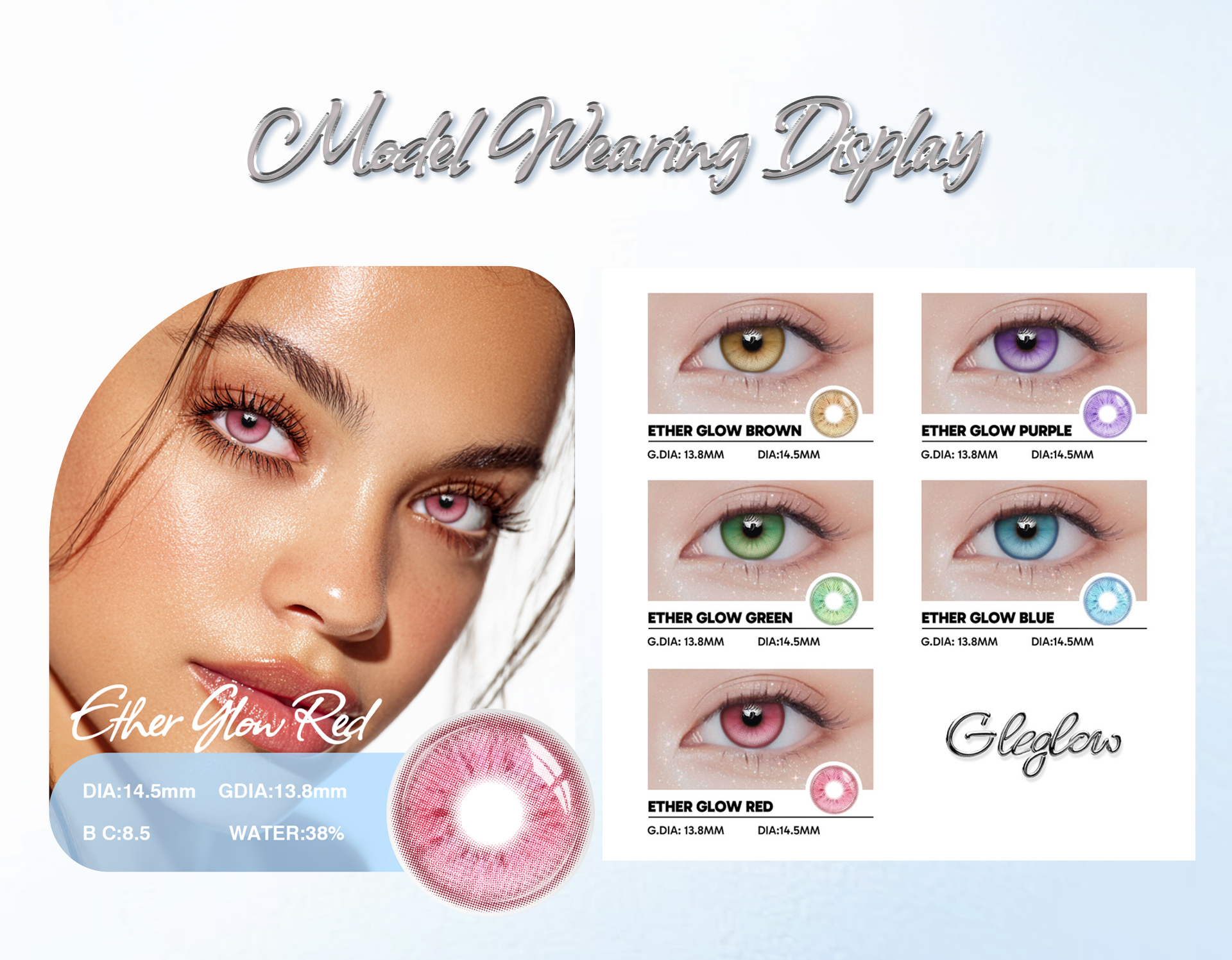 Ether Glow Red – 1 Year, 2 Lenses gives your eyes a bold, fiery red glow with all-day comfort and a 12-month lifespan—perfect for cosplay, fantasy styling, and dramatic looks.