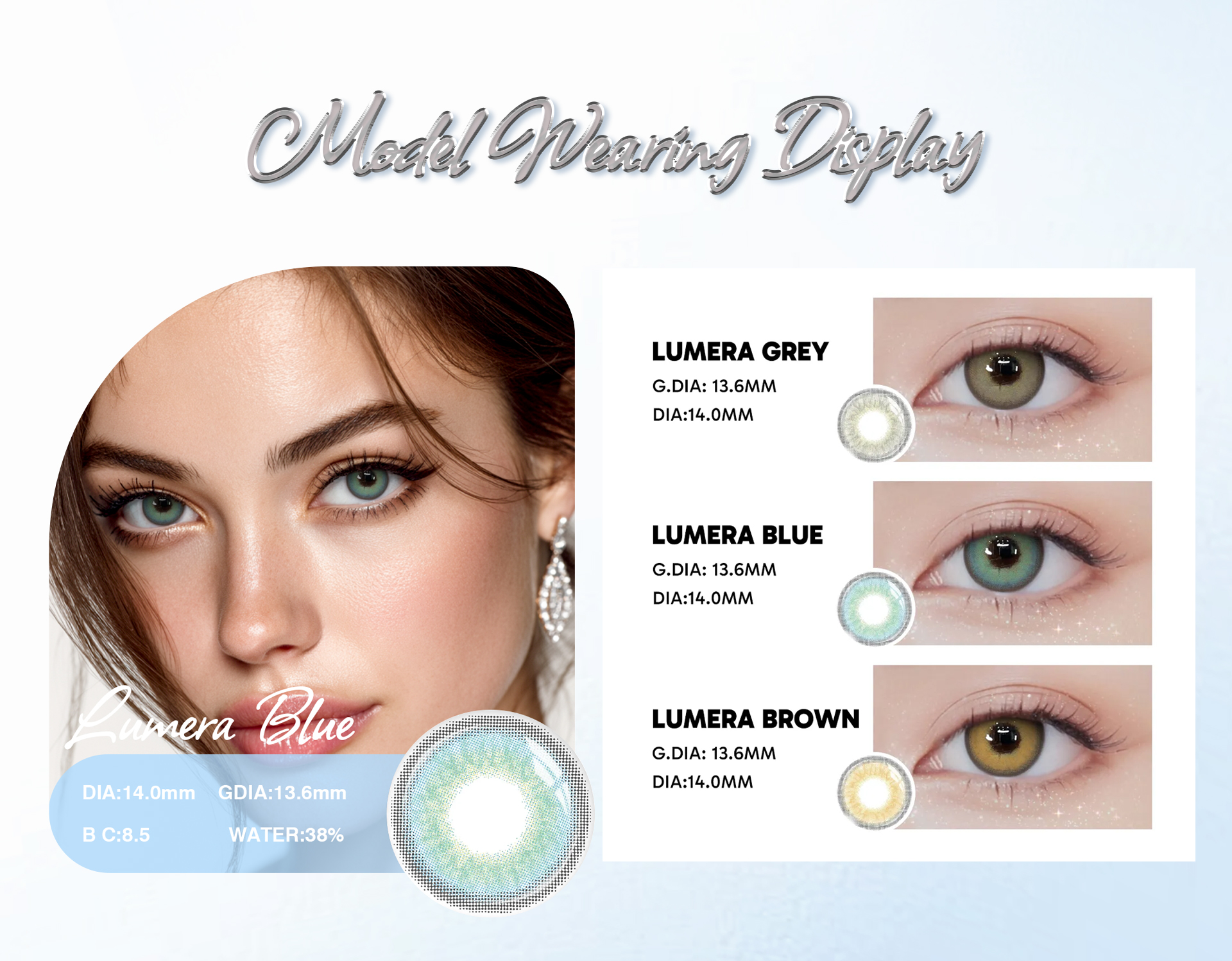 Lumera Blue 1-Year Contact Lenses offer a vibrant yet natural blue eye enhancement with superior comfort and long-lasting wear. With a 12-month lifespan and hydrating material, they’re ideal for everyday beauty and special occasions.