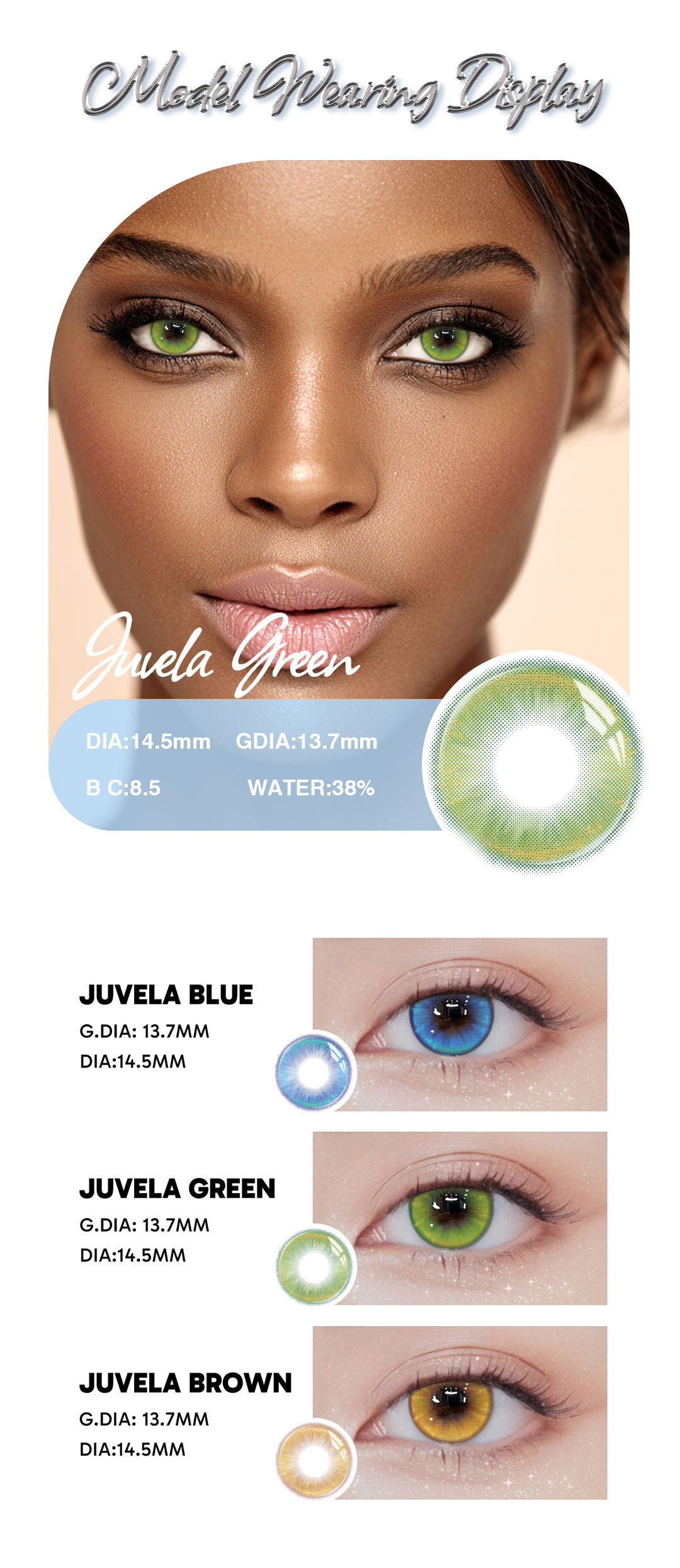 Juvela Green 1-Year Contact Lenses offer a naturally bright green enhancement with superior comfort and durability. With a 12-month lifespan and a realistic color blend, they’re ideal for daily elegance or standout looks.