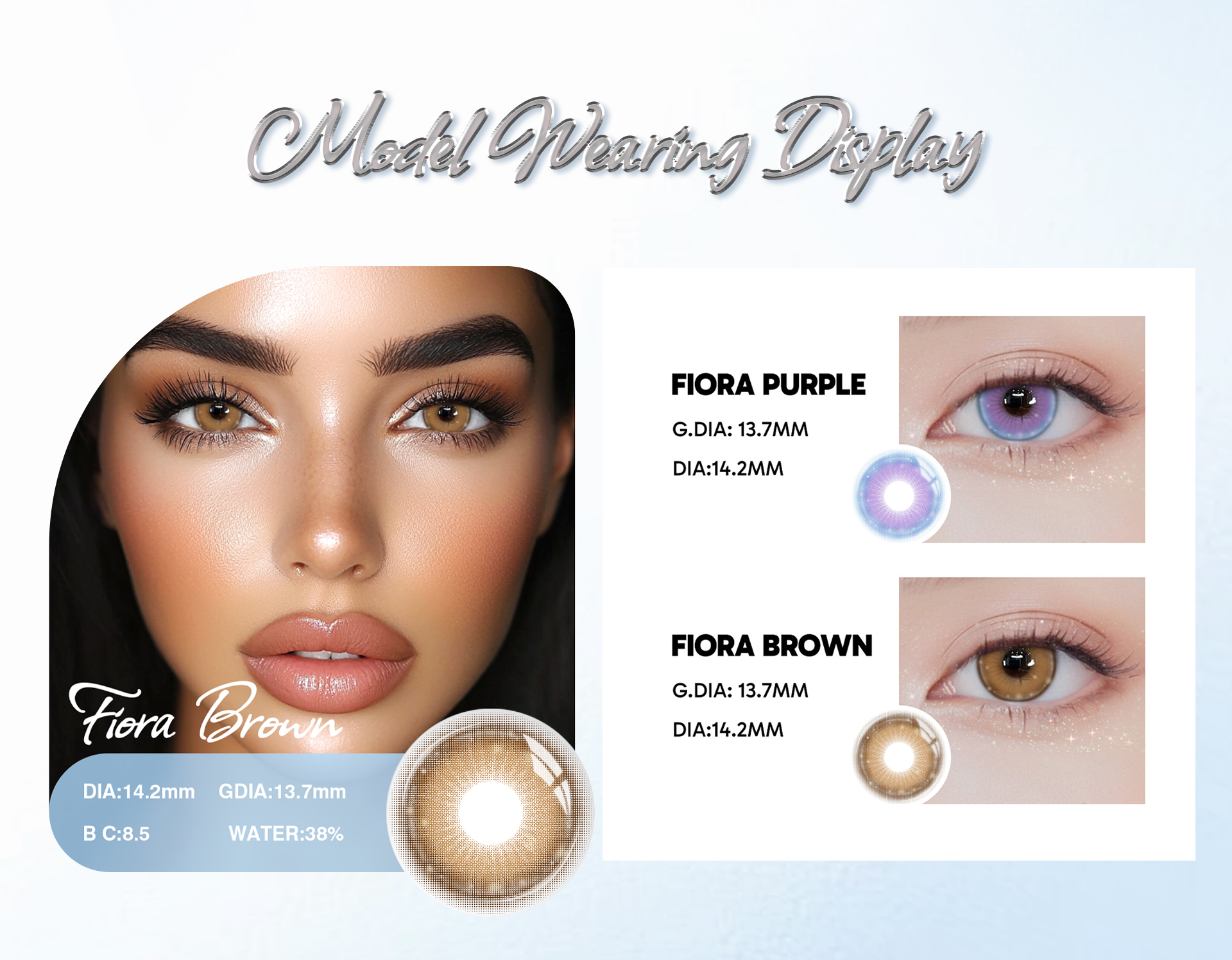 Fiora Brown 1-Year Contact Lenses provide a natural brown eye enhancement with long-lasting comfort and clarity. With a 12-month lifespan and soft, hydrating material, they’re perfect for everyday elegance or polished, special occasion looks.