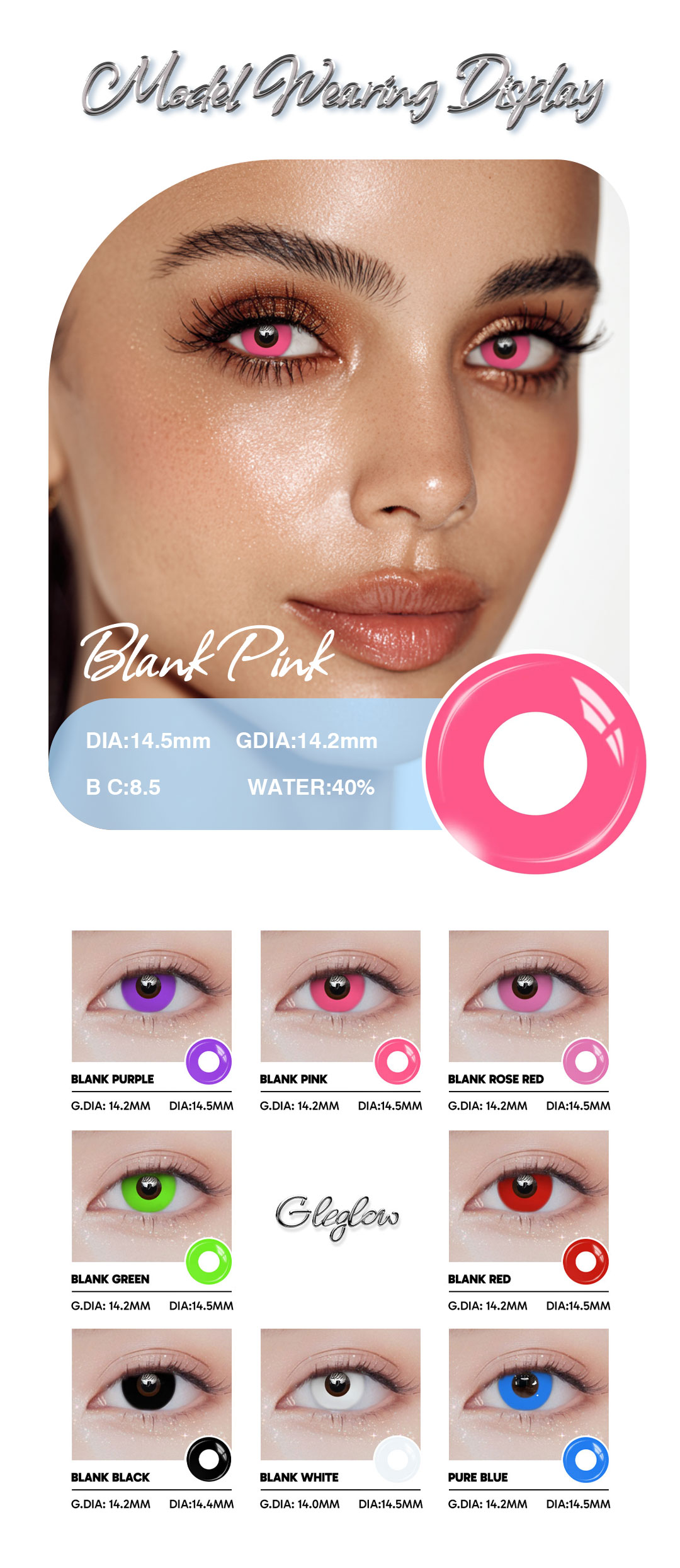 Brighten your eyes with Blank Pink contact lenses. Soft, comfortable, and reusable for up to 1 year, this pair adds a gentle pink tint to enhance your natural eye color. Ideal for fashion, cosplay, or everyday style.