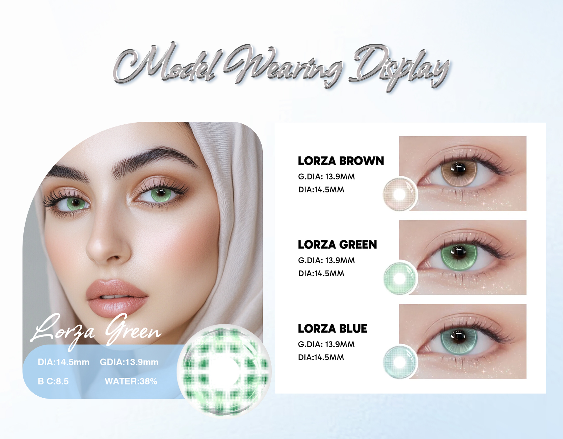 Lorza Green 1-Year Contact Lenses provide a natural, radiant green enhancement with long-lasting comfort and clarity. With a realistic design and 12-month durability, they’re ideal for daily wear or eye-catching occasions.