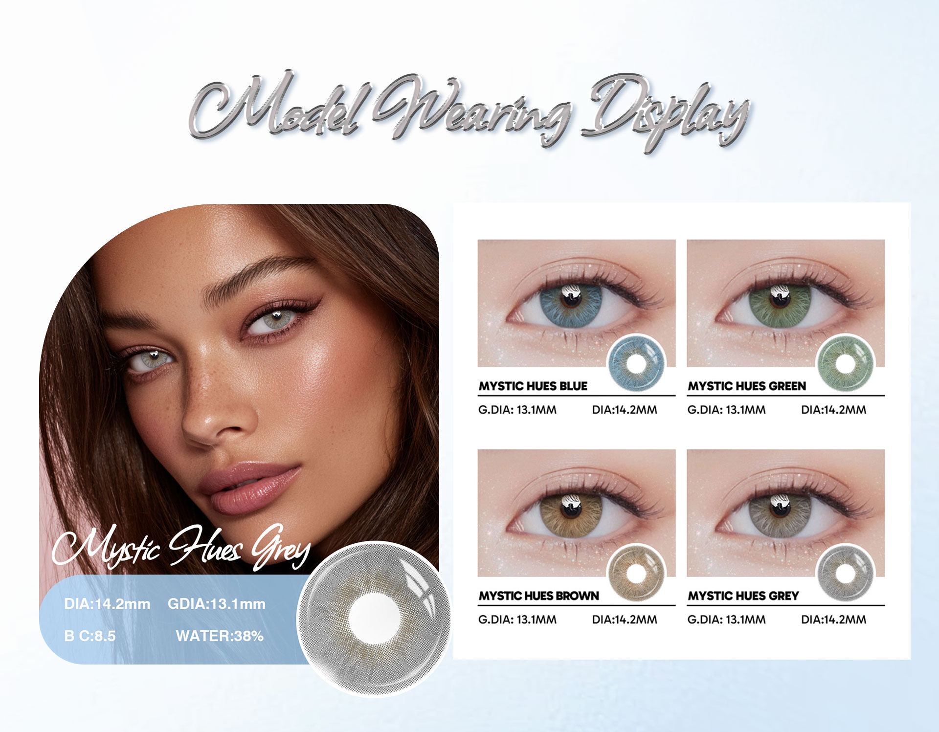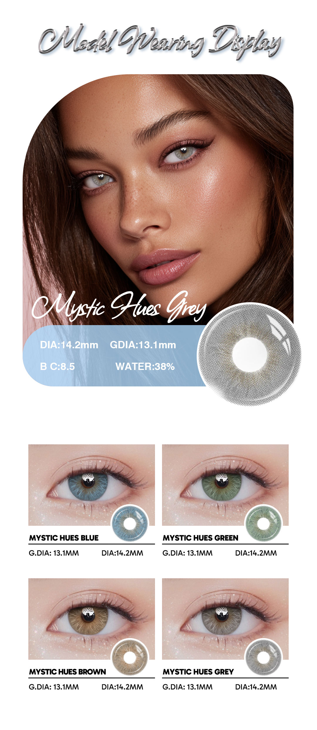 Mystic Hues Grey - 1 Year, 2 lenses Colored Contacts - Gleglow
