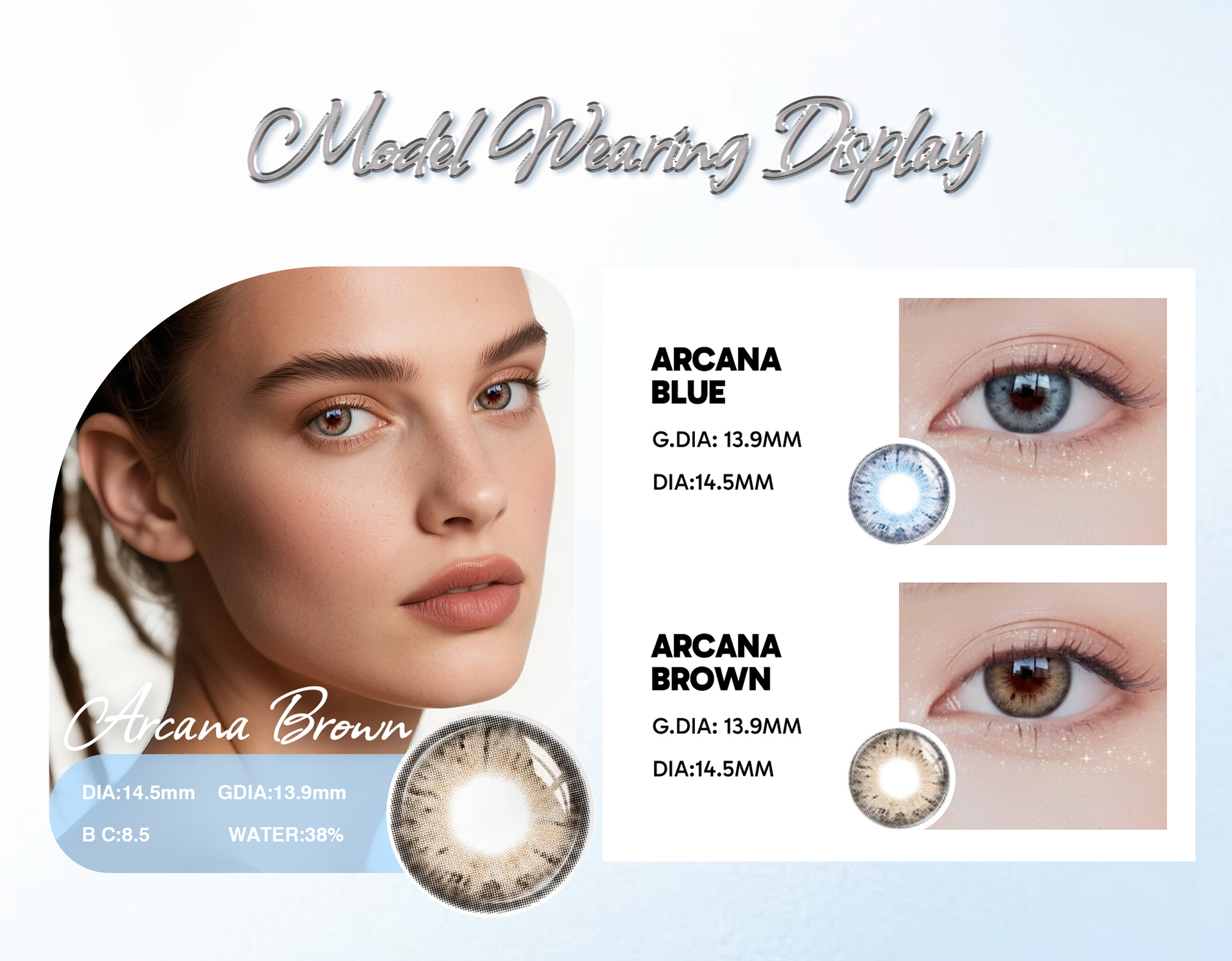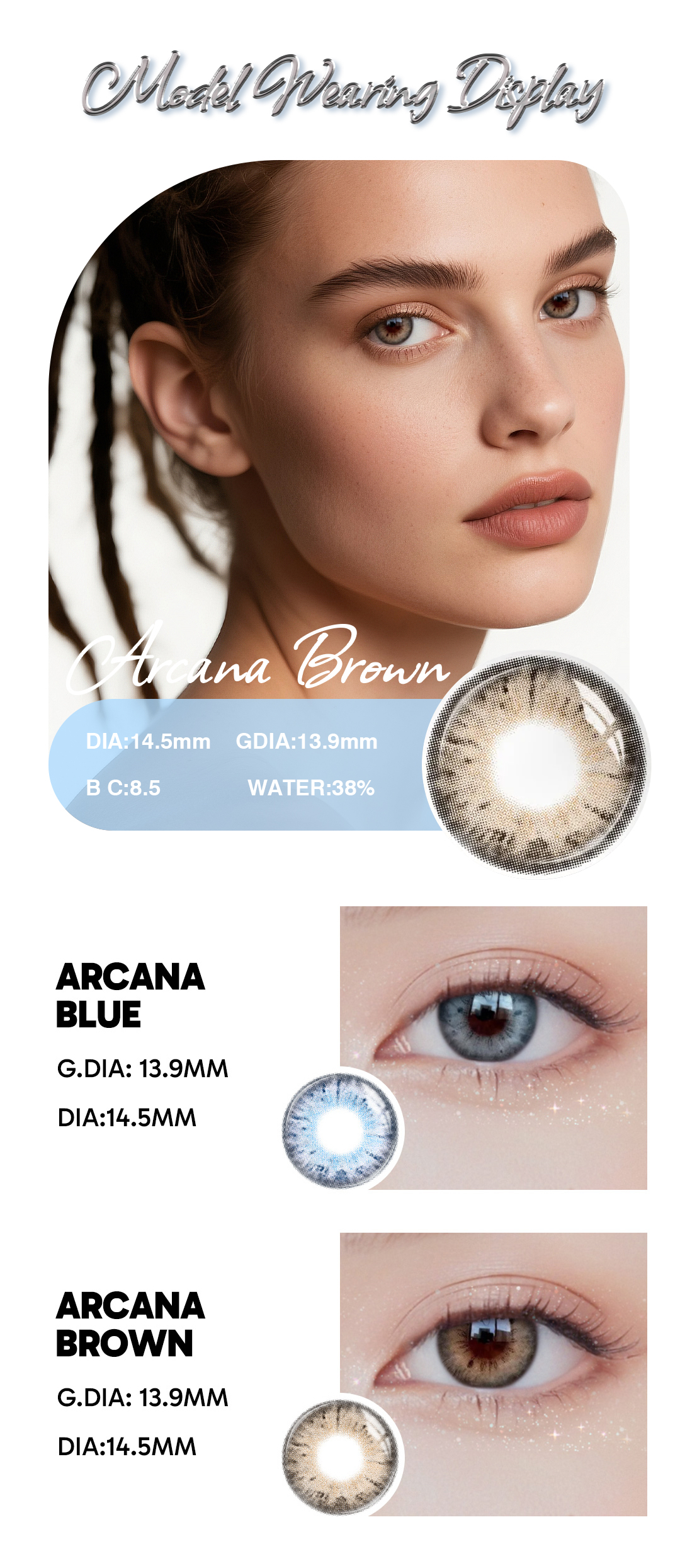 Arcana Brown 1-Year lenses provide a warm, natural enhancement with superior comfort and durability. Perfect for achieving a soft, radiant brown look every day of the year.