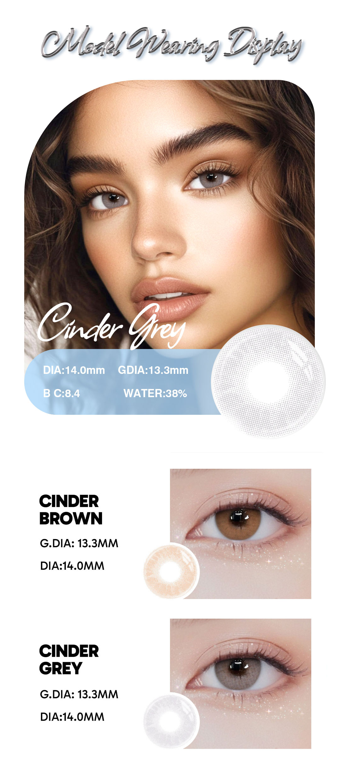 Cinder Grey 1-Year Contact Lenses provide a subtle yet striking grey enhancement with long-lasting comfort and clarity. With their 12-month durability and natural finish, they’re perfect for everyday beauty or standout moments.