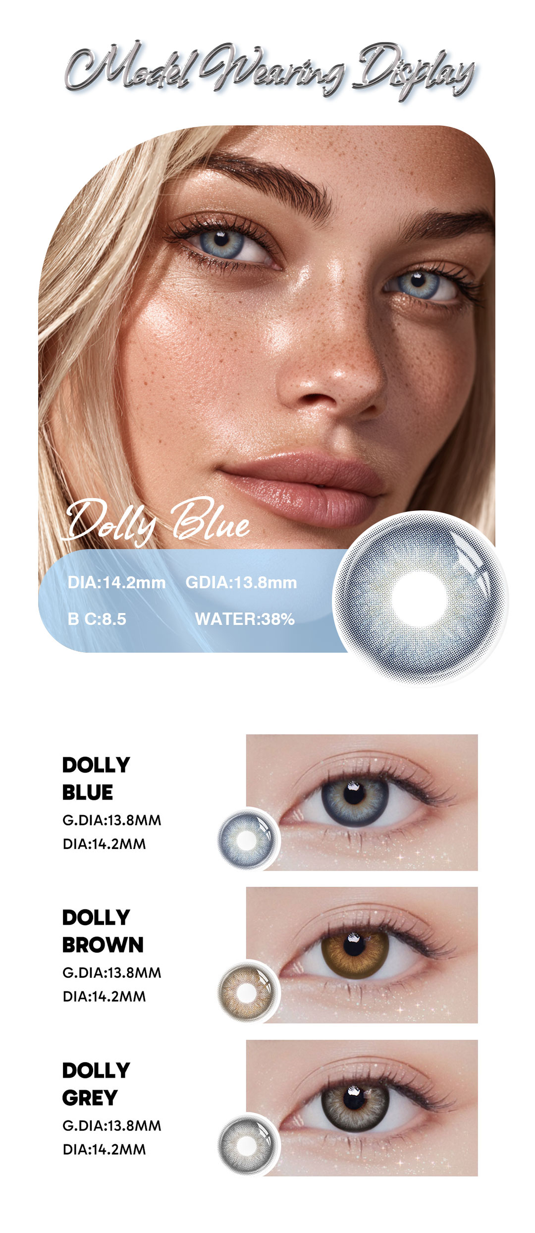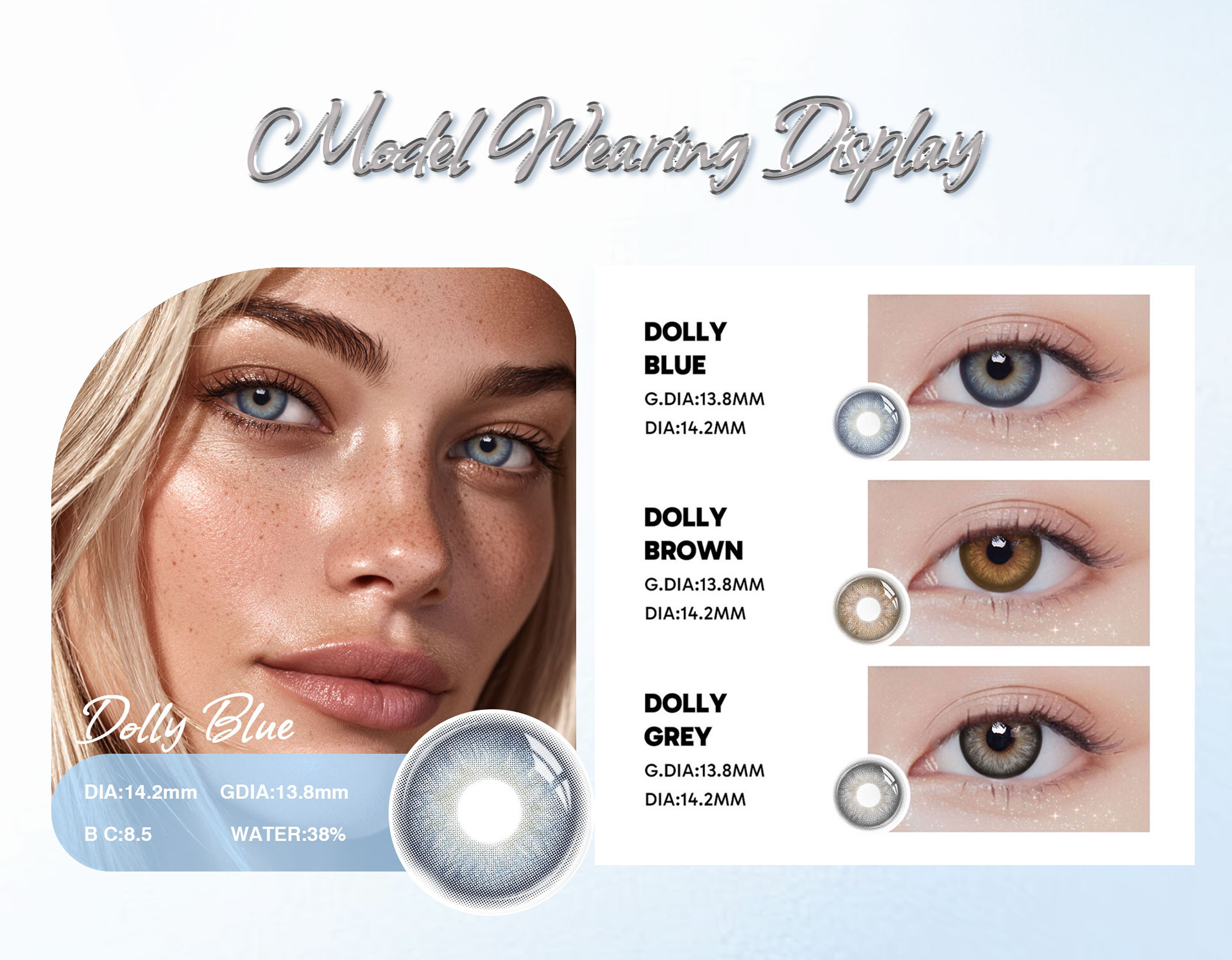 Dolly Blue - 1 Year, 2 lenses Colored Contacts - Gleglow