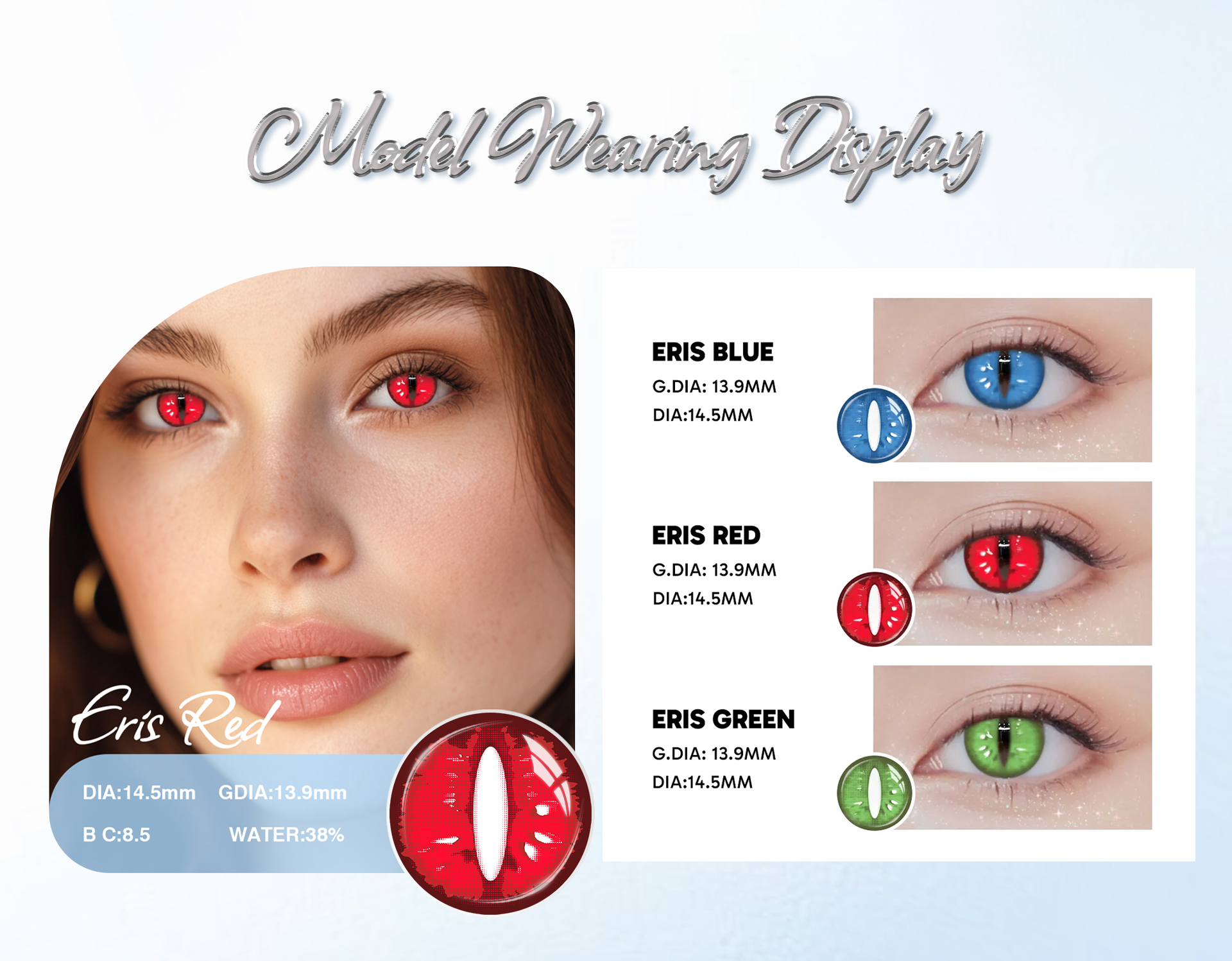 Eris Red – 1 Year Contact Lenses provide a bold, stylish way to achieve vibrant red eyes. With two lenses per pack and a one-year lifespan when cared for properly, these lenses are perfect for cosplay, themed events, or making a dramatic fashion statement.