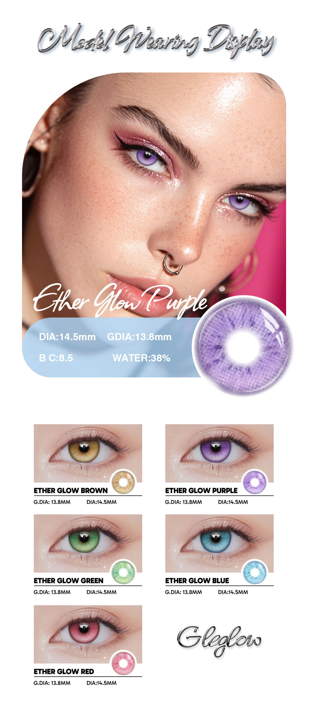 Ether Glow Purple – 1 Year, 2 Lenses gives your eyes a bright, fantasy-inspired purple glow with comfortable, long-lasting wear—perfect for cosplay, creative looks, and bold everyday style.