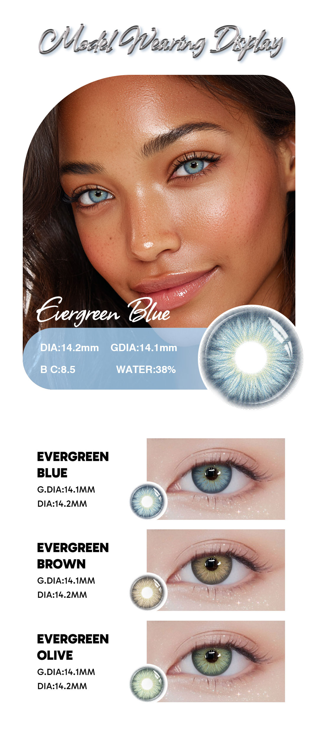 Evergreen Blue - 1 Year, 2 lenses Colored Contacts - Gleglow