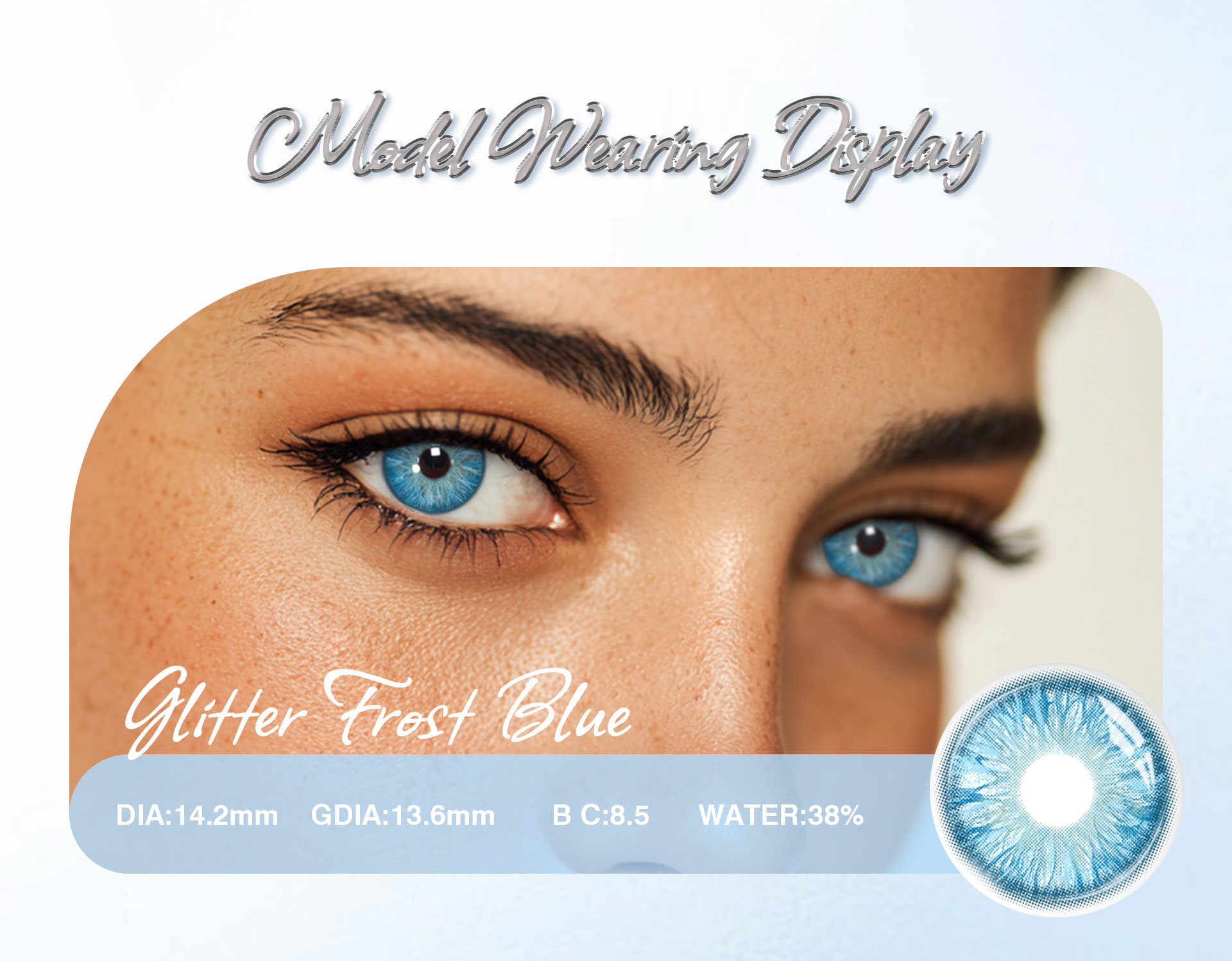 Glitter Frost Blue - 1 Year, 2 lenses Colored Contacts - Gleglow