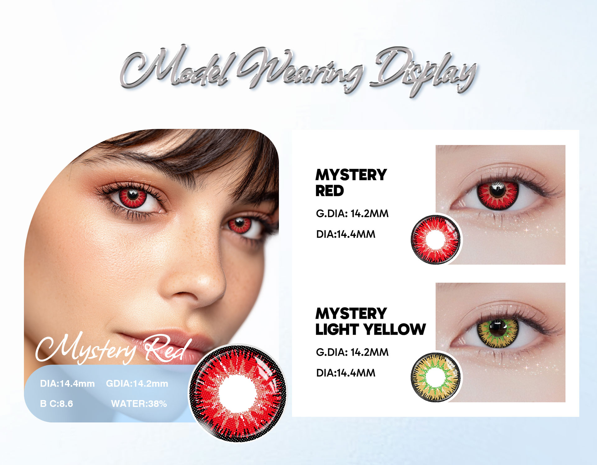 Turn heads with Mystery Red contact lenses. Soft, comfortable, and reusable for up to 1 year, this pair delivers a deep, captivating red hue, ideal for cosplay, fashion, or dramatic everyday style.