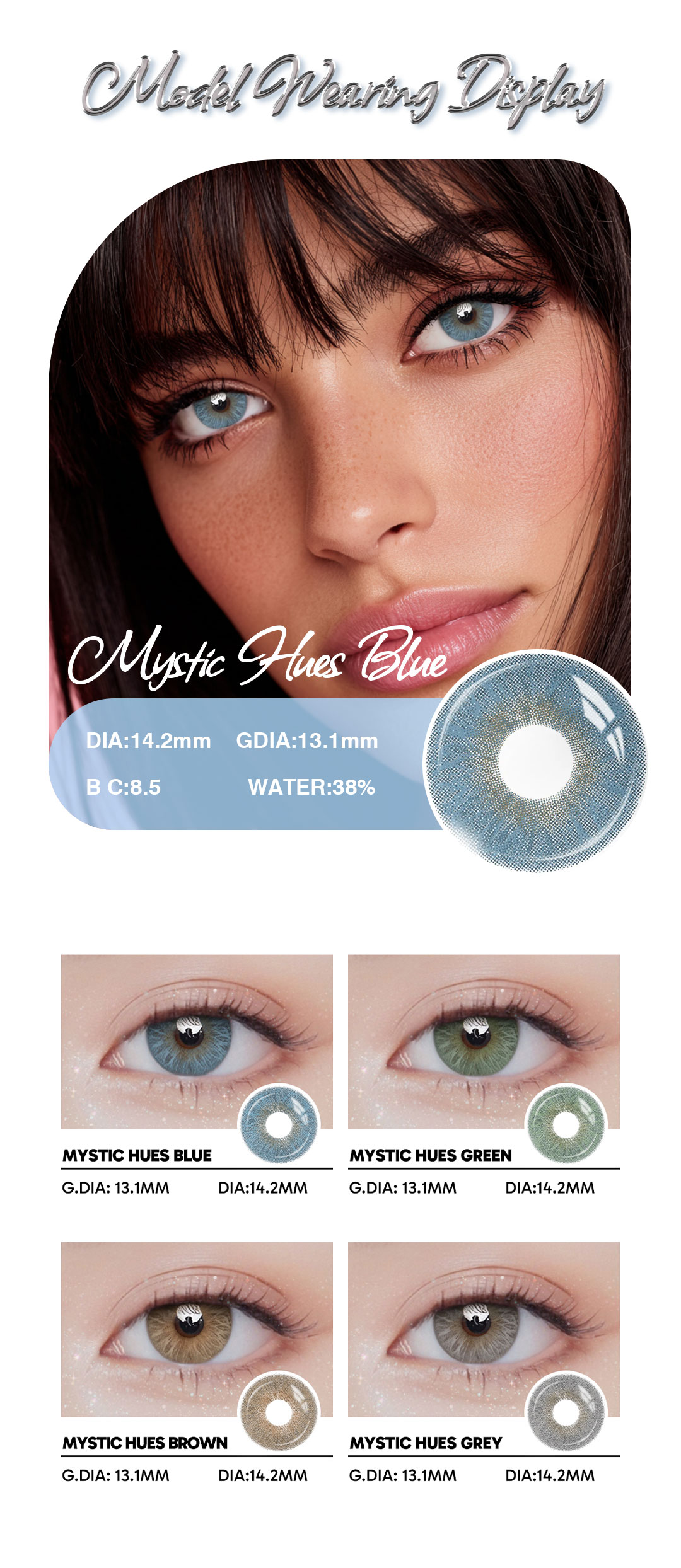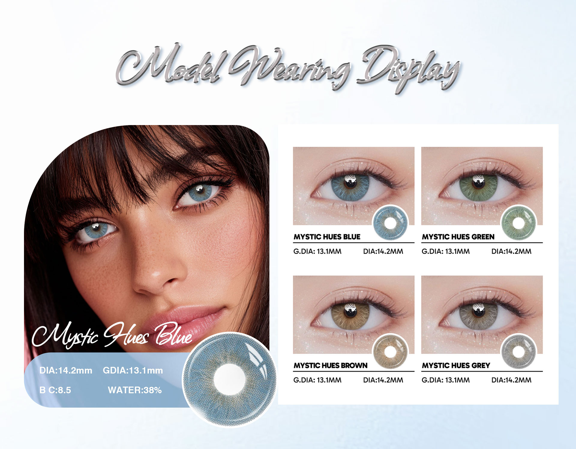 Mystic Hues Blue - 1 Year, 2 lenses Colored Contacts - Gleglow
