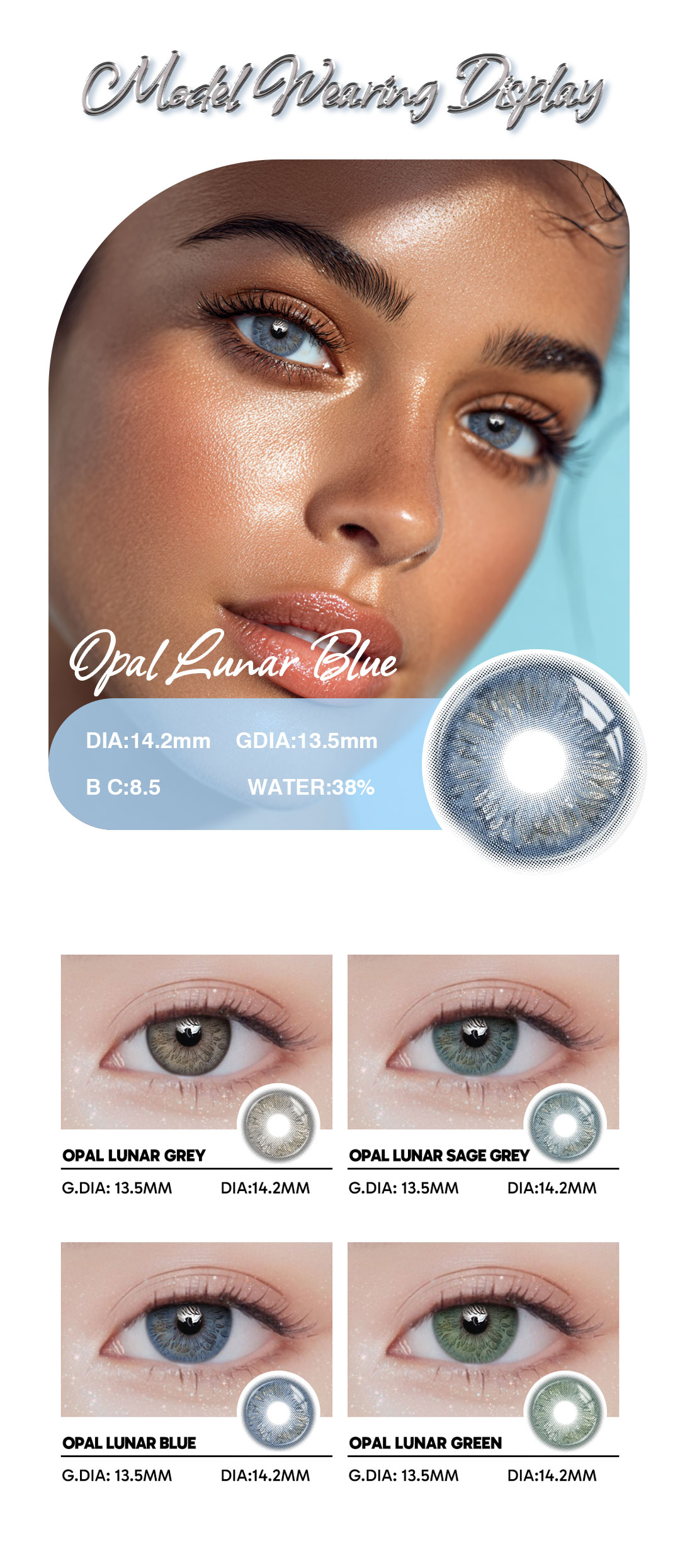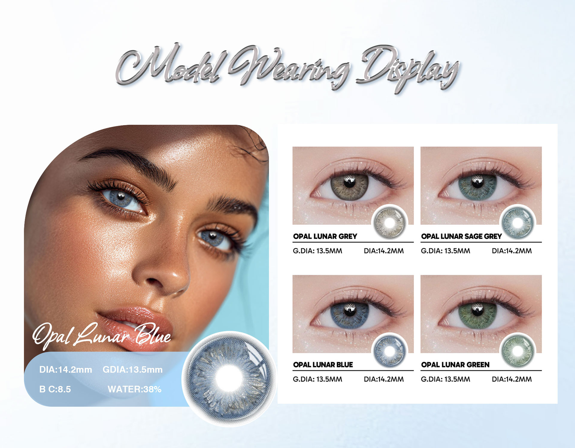 Opal Lunar Blue - 1 Year, 2 lenses Colored Contacts - Gleglow