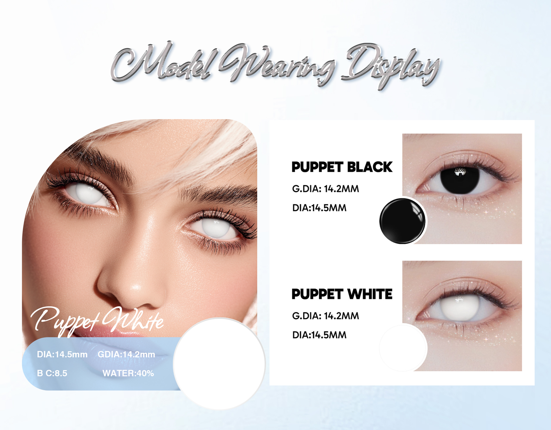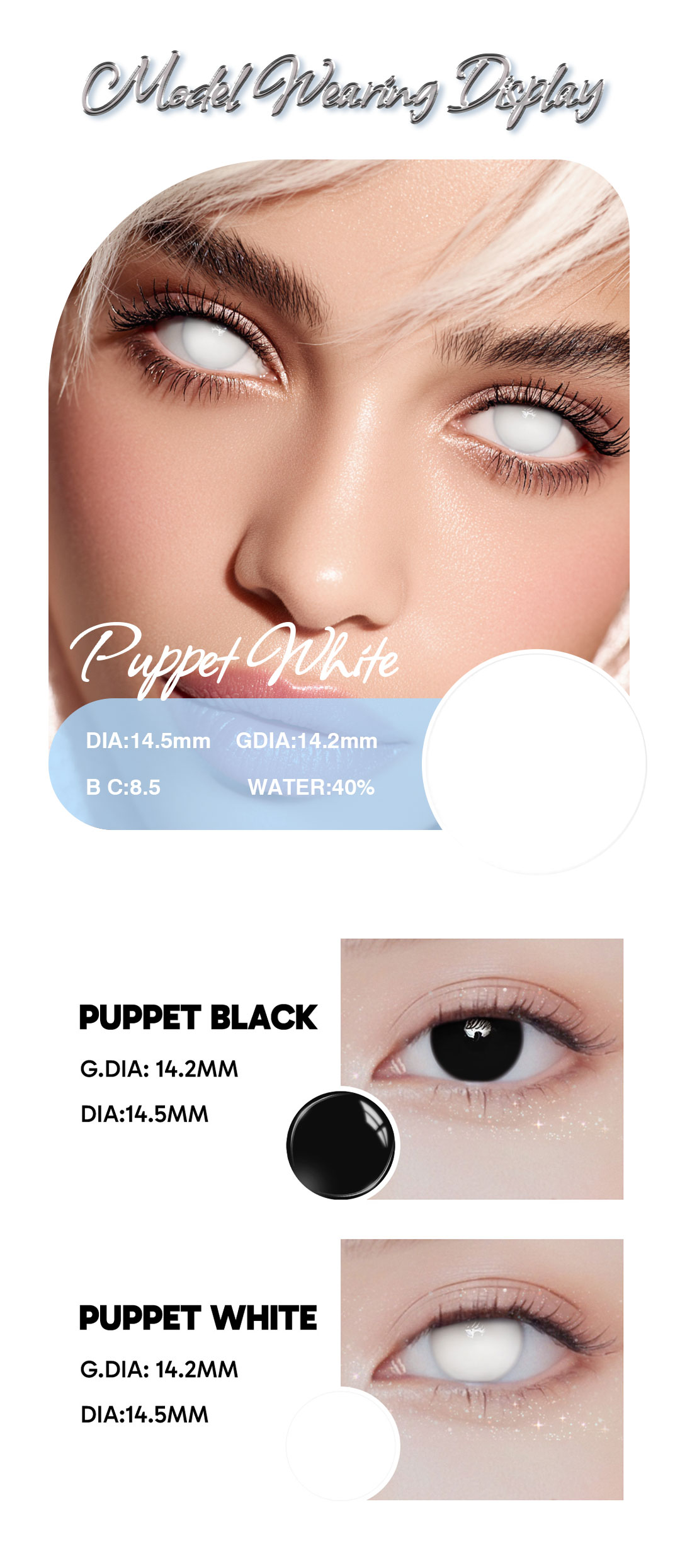 BLINDING EFFECT: The pupil area is completely opaque halloween contact lenses,cosplay contacts,white contacts,zombie contacts,witch contacts