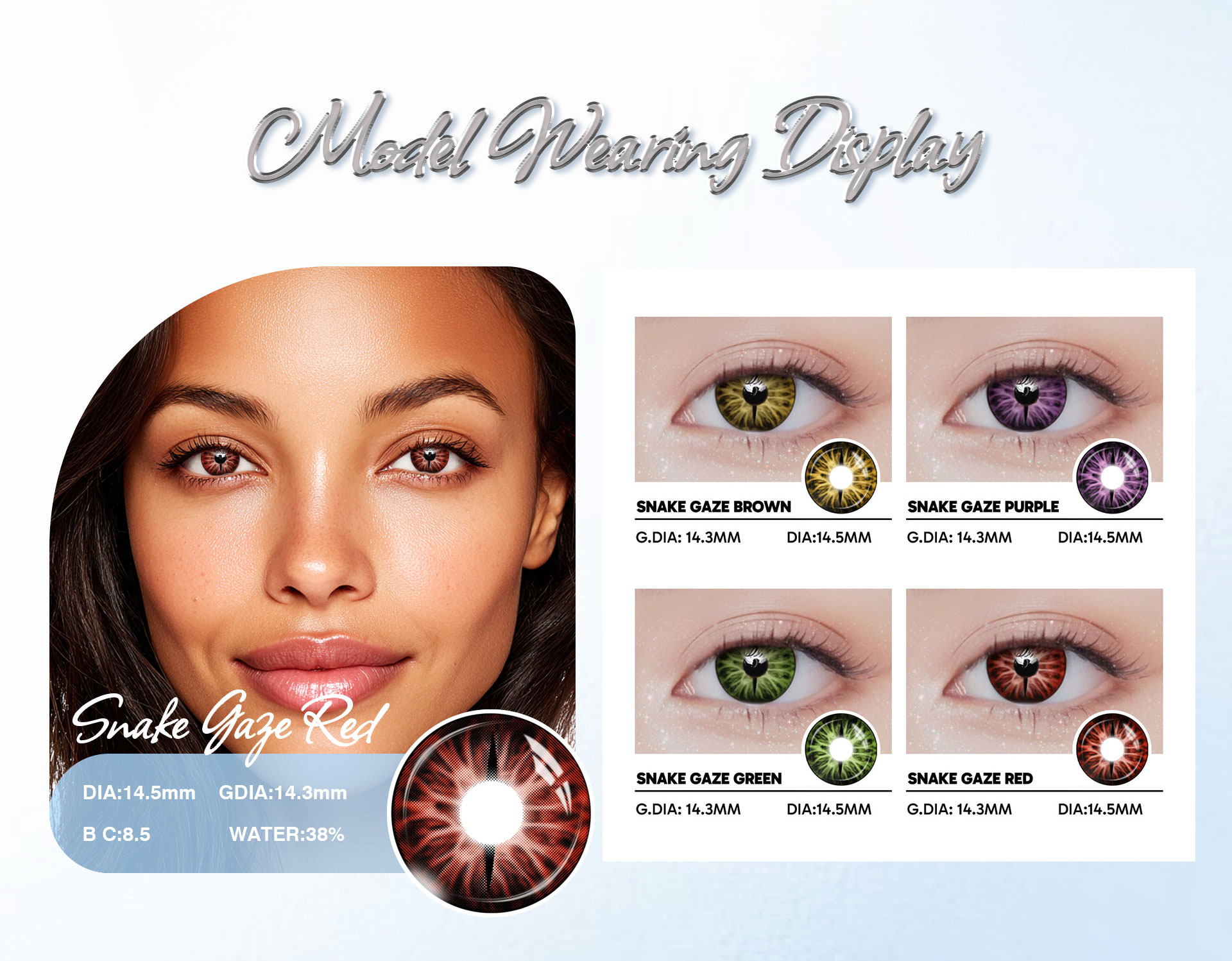 Snake Gaze Red - 1 Year, 2 lenses Colored Contacts - Gleglow