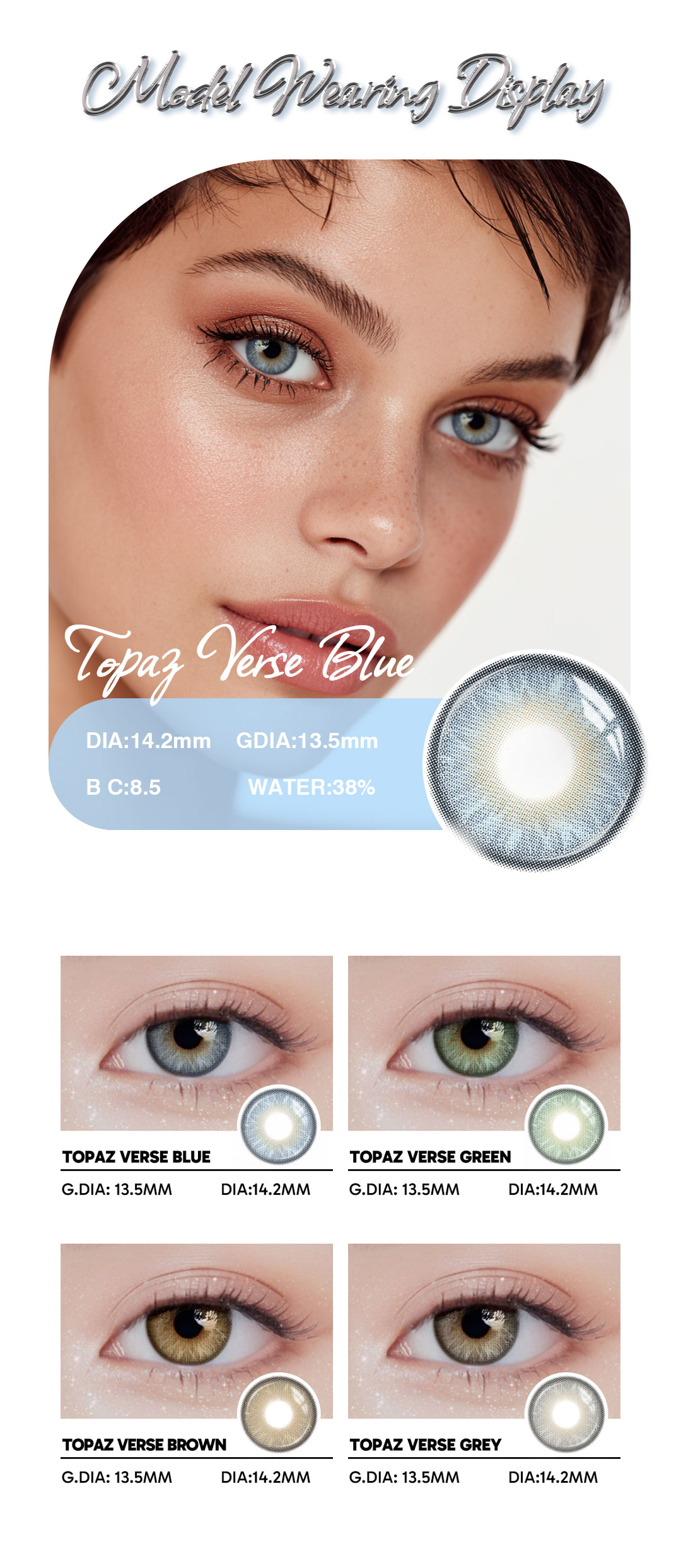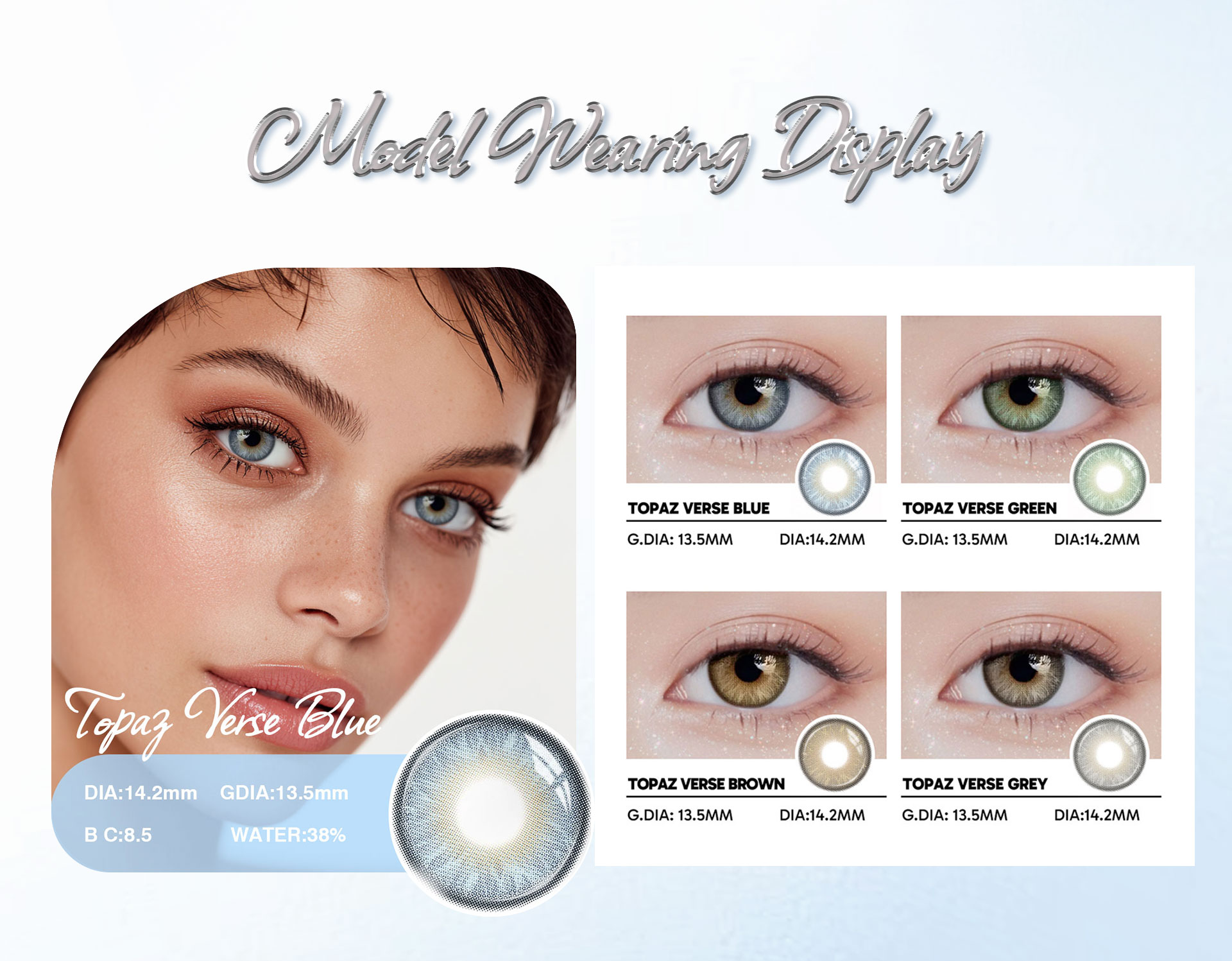 Topaz Verse Blue - 1 Year, 2 lenses Colored Contacts - Gleglow
