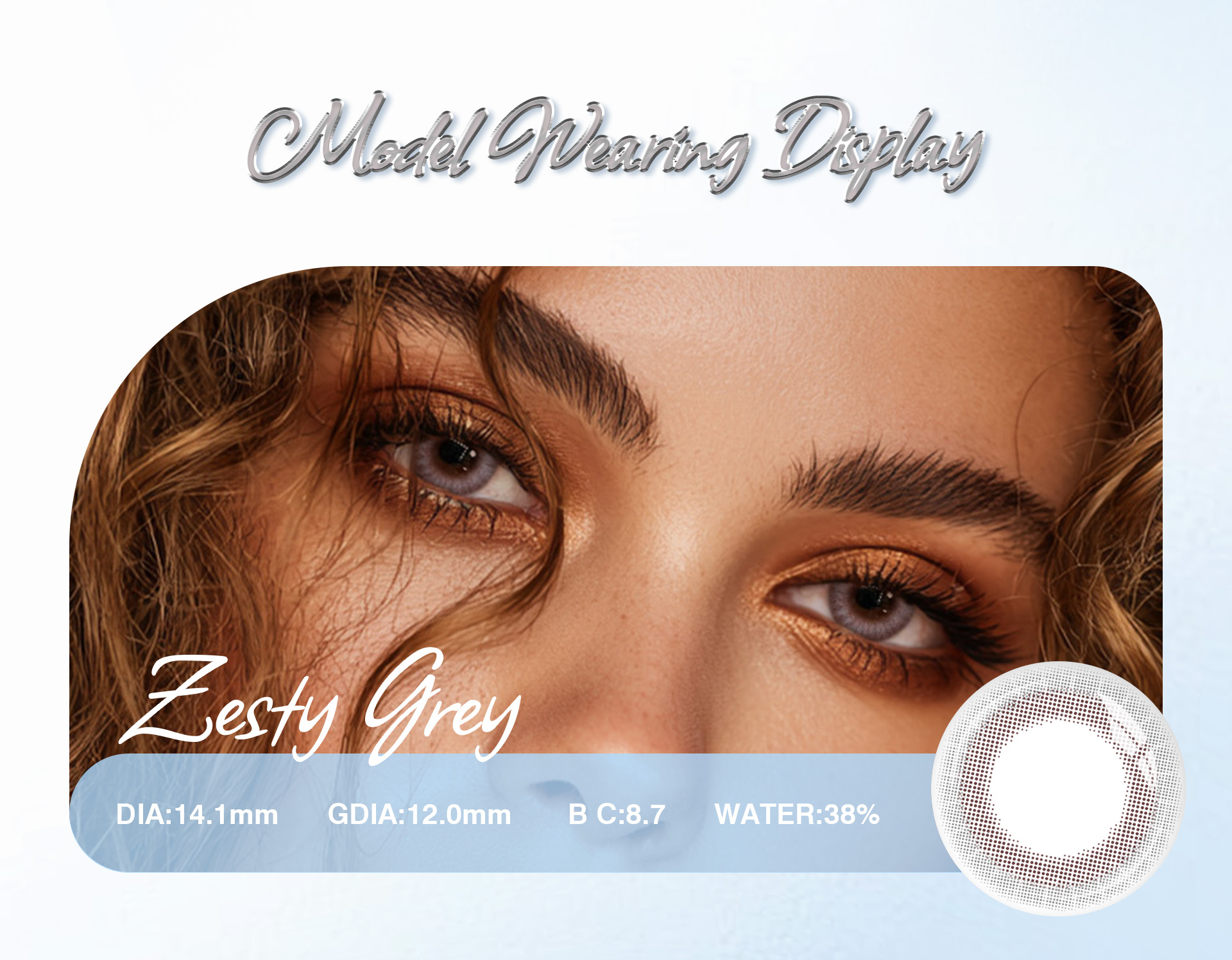 Zesty Grey 1-Day contact lenses deliver natural grey radiance in a convenient 10-piece disposable pack. Perfect for fresh, comfortable, and maintenance-free daily wear.