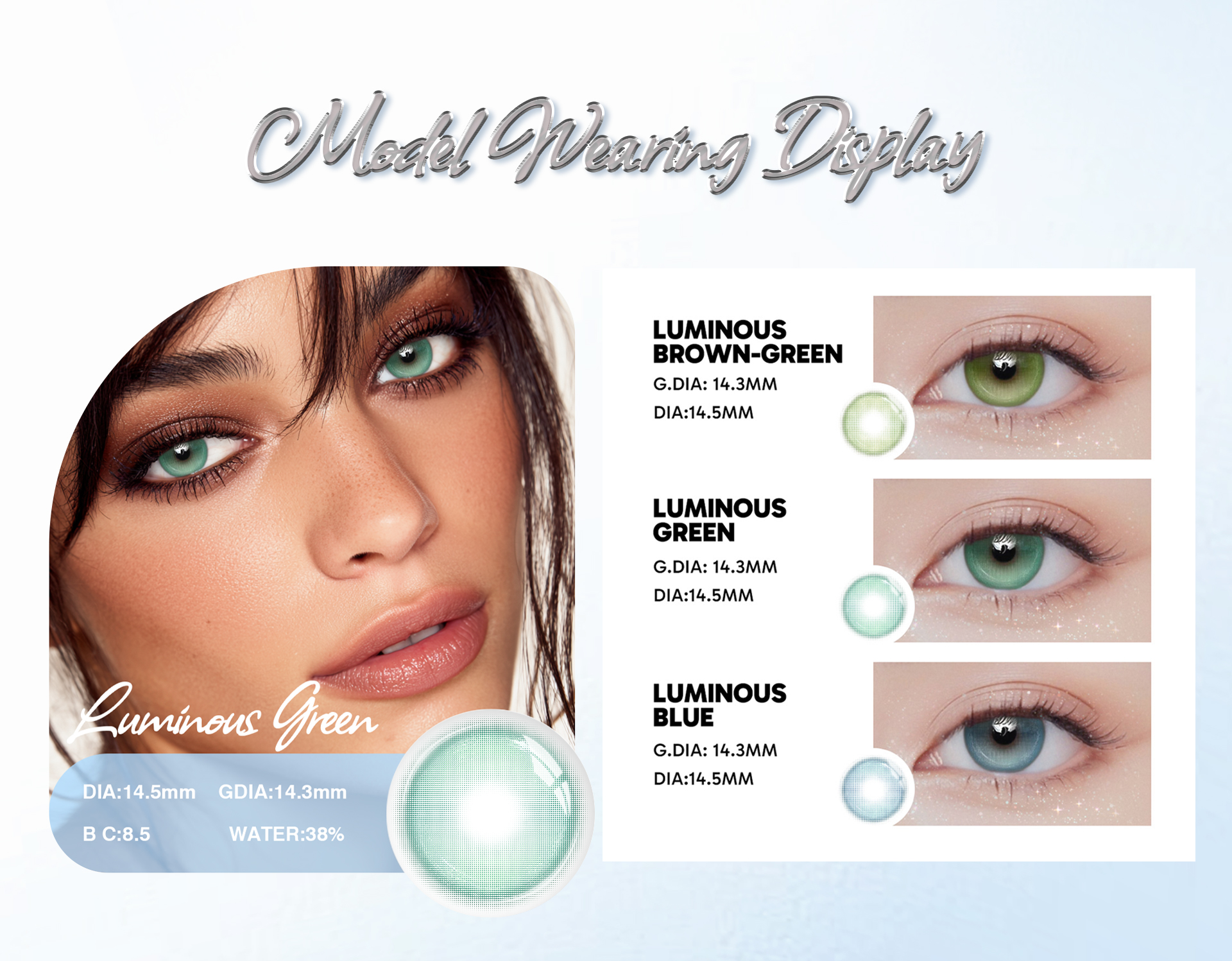 Luminous Green Monthly Contact Lenses deliver vibrant, natural-looking eyes with superior comfort and protection. Suitable for prescription and non-prescription users, these FDA & CE certified lenses resist protein build-up and protect against UV and blue light, making them perfect for all-day wear.