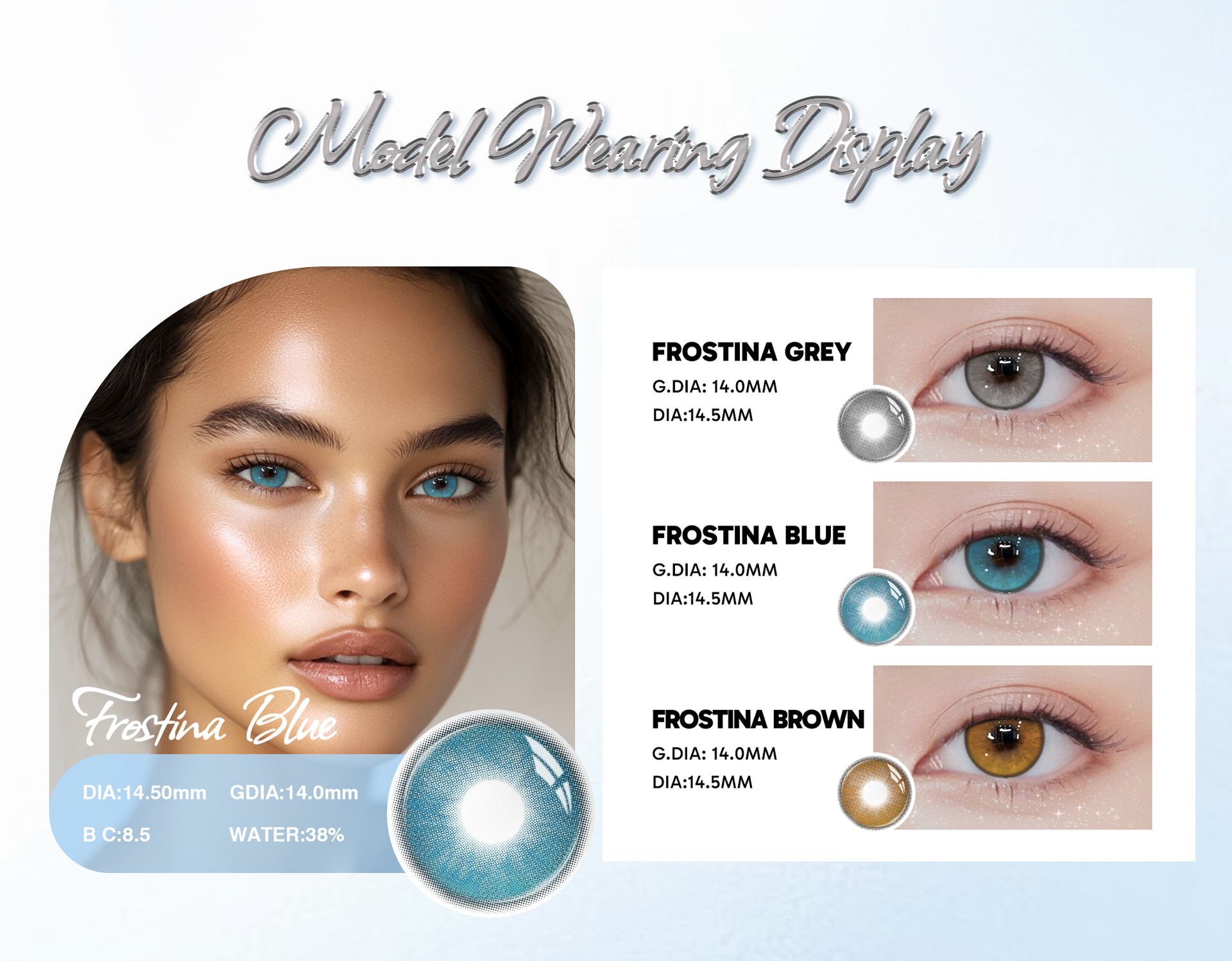 Frostina Blue - 1 Year, 2 lenses Colored Contacts - Gleglow