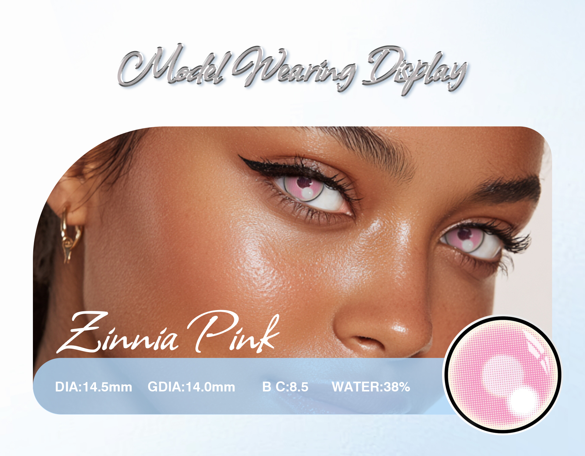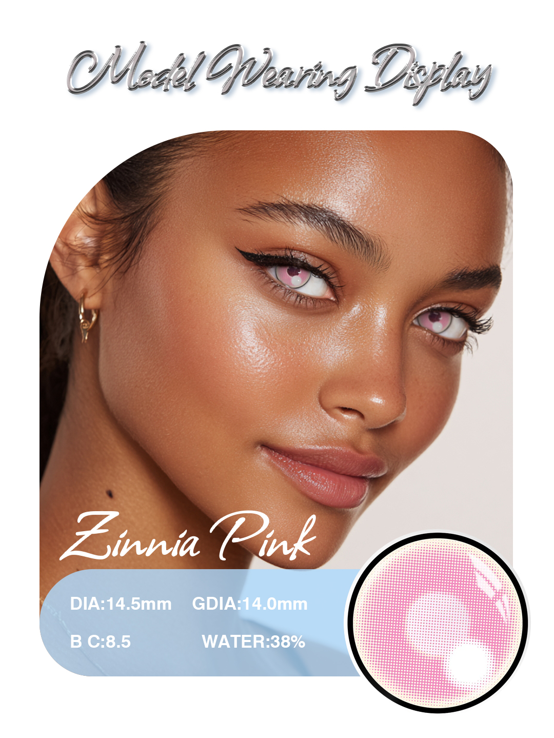 Zinnia Pink 1-Year Contact Lenses offer a beautiful, soft pink eye color with long-lasting comfort and safety. With a full pair included, they’re ideal for everyday wear, cosmetics, or creative looks.